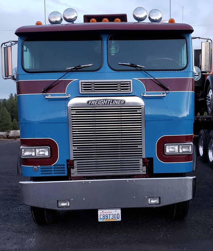 Затем- следующие своим ходом кабовер Freightliner FLB из 70х...
