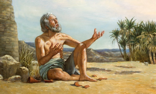 В оригинале библейского праведника Иова бог подвергает испытаниям, поскольку подозревает, что Иов любит его только за благодеяния. Но Иов, лишённый всех богатств, не перестаёт любить бога и молиться ему, понимая, что всевышний его испытывает.