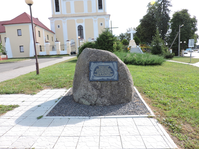 Установлена статуя перед костёлом святых апостолов Петра и Павла, самым большим сооружением города. Его начинали строить ещё в XV веке.