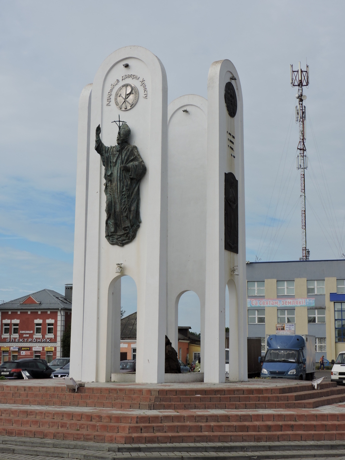 Лет десять назад на Комсомольской площади в самом центре города установили четырёхсторонний памятный знак по числу конфессий: католики, христиане, мусульмане и иудеи.