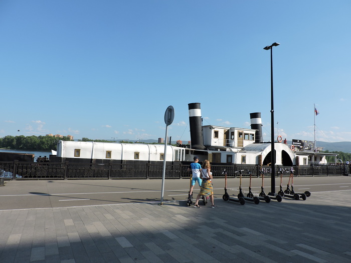 А через дорогу (через улицу Карла Маркса) на набережной Енисея - пароход-музей Святитель Николай.