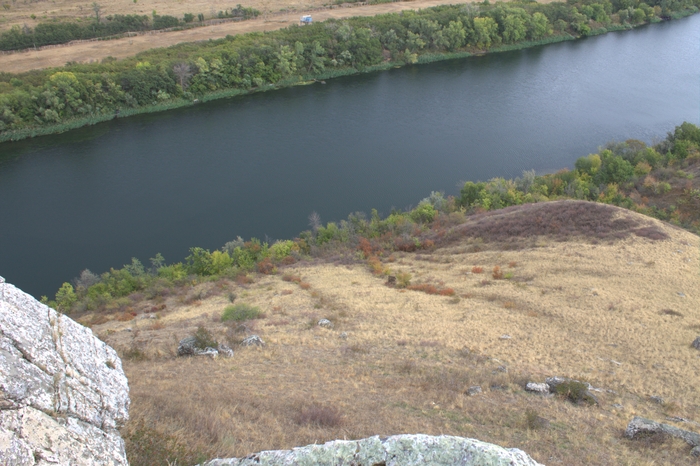 Проехав по серпантину до хутора и сквозь него, поворачиваем налево и мчим к Двум сёстрам. Две сестры - это выход породы Донецкого кряжа, который можно наблюдать и в Прохоровке, и в Зайцевке (посты есть о них у меня в профиле). Но в отличии от выше перечисленных локаций, Две сестры имеют выгодную позицию в том, что они возвышаются над руслом Северского Донца, а для фотографов это просто Мекка. По пути я, конечно же, не мог пропустить местную растительность.