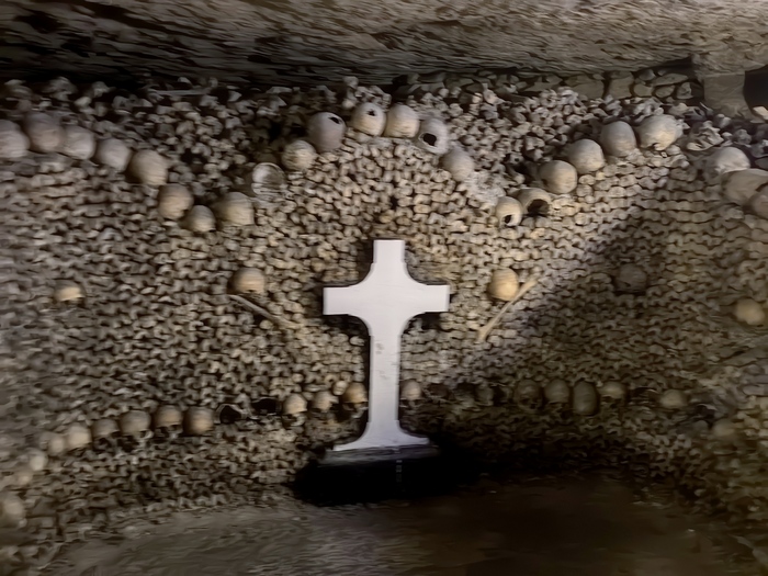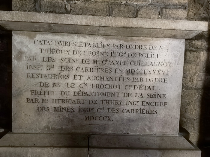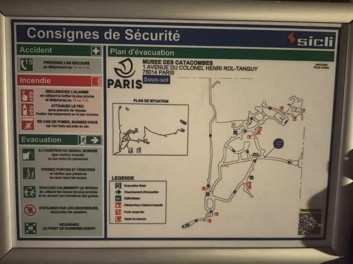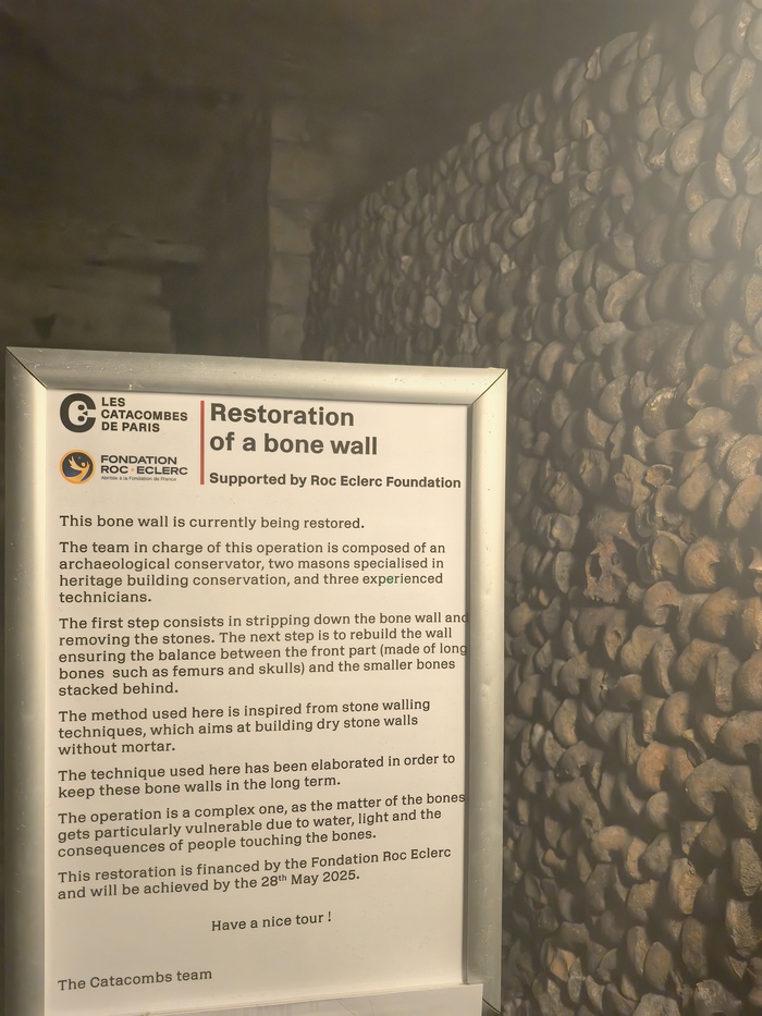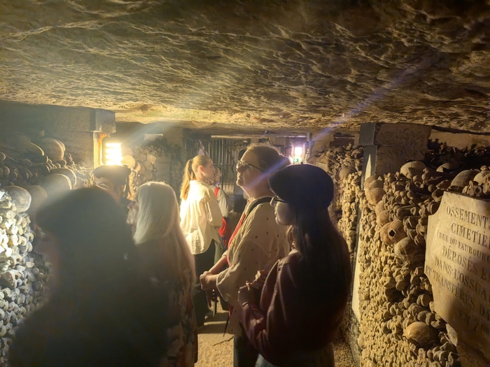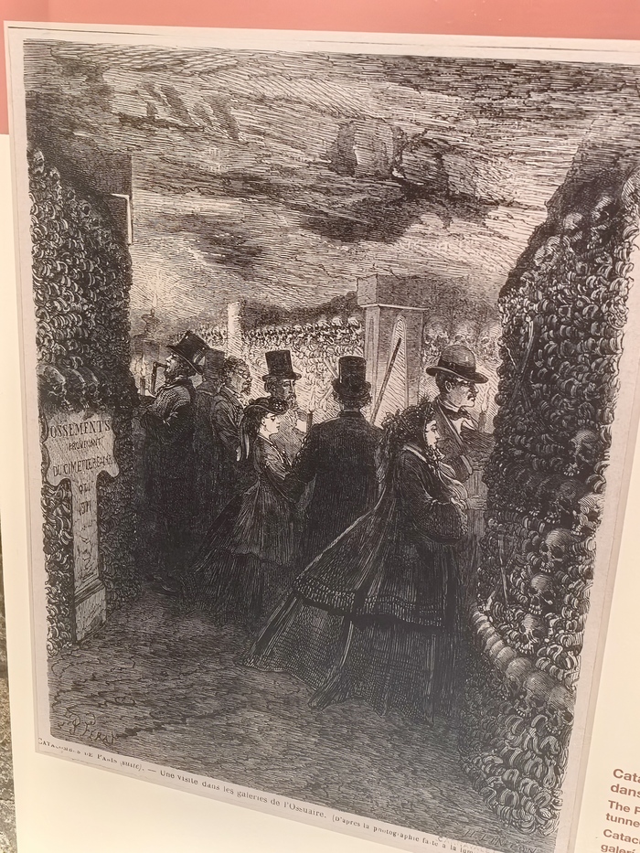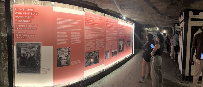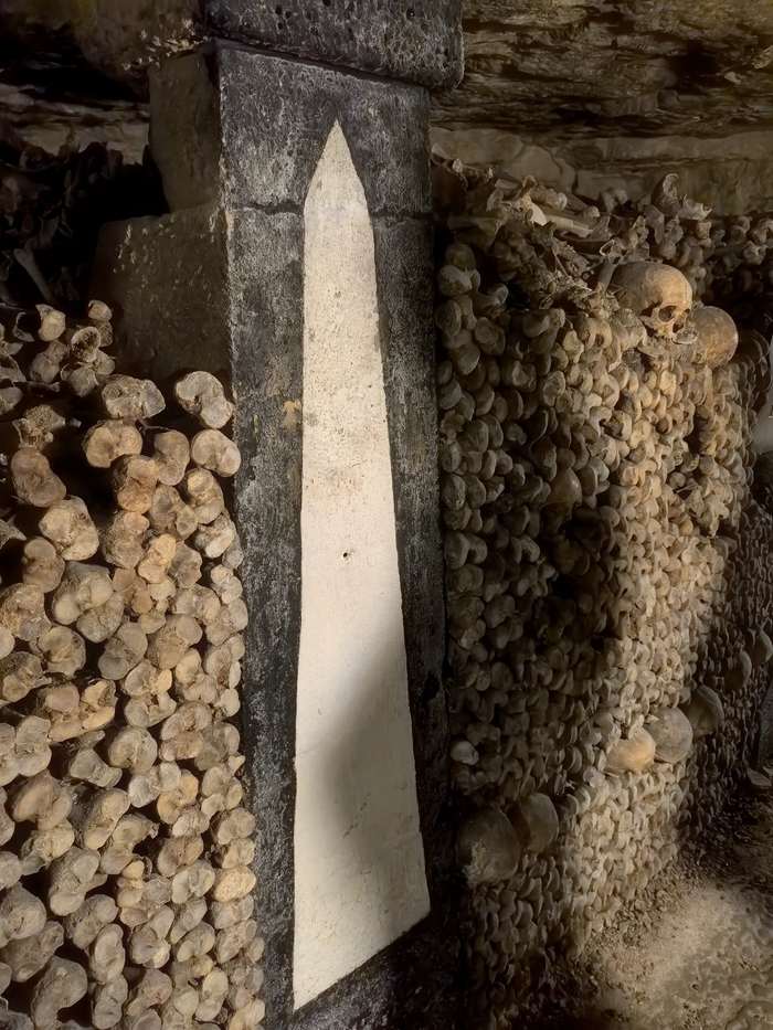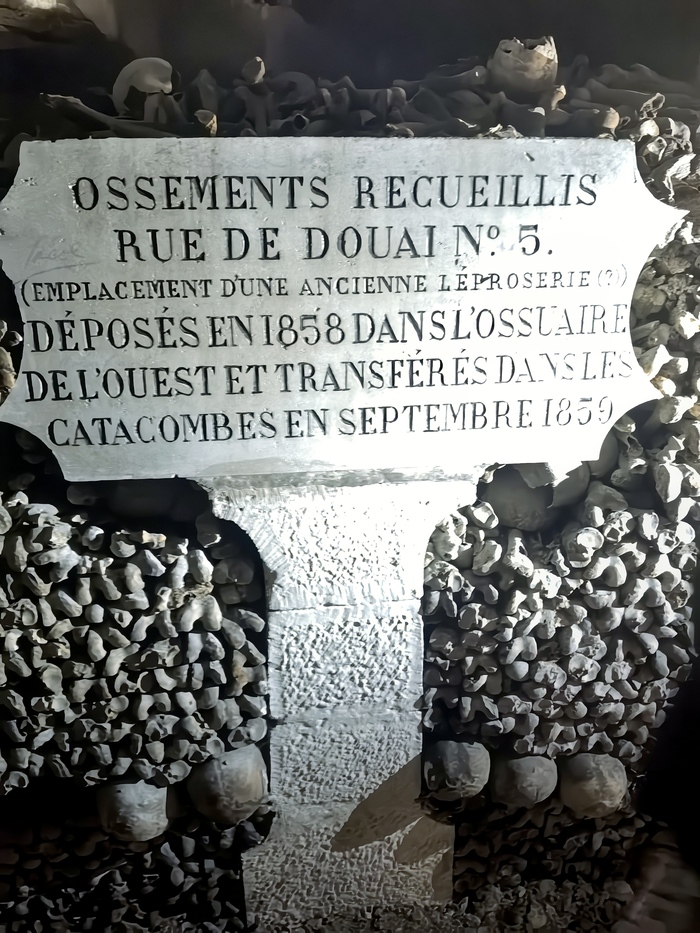 Площадь основной зоны катакомб, доступной для посетителей (костехранилище), составляет около 11 000 квадратных метров (1,1 гектара), где аккуратно сложены кости и черепа примерно 6 миллионов парижан, тогда как общая протяженность всех подземных туннелей-каменоломен под Парижем — от 187 до 300 км . По факту открыта к осмотру довольно маленькая часть