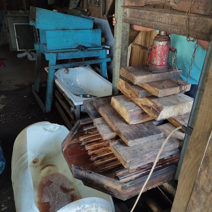 В подставленную бочку льётся вкуснейший сок. Хаер предлагает набрать стакан прямо из-под «крана». Невероятно! Волшебства добавляет то, что я участвовал почти на всех этапах.