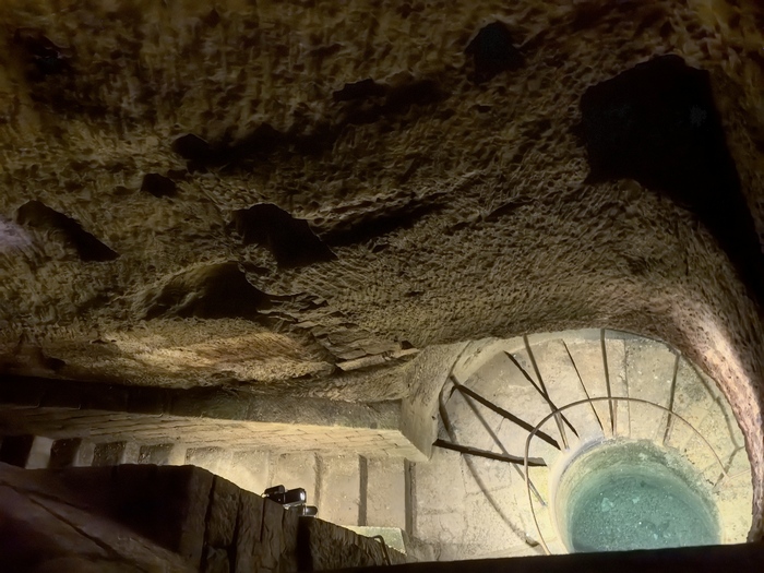 Вот примерно по такой лестнице спускались вниз