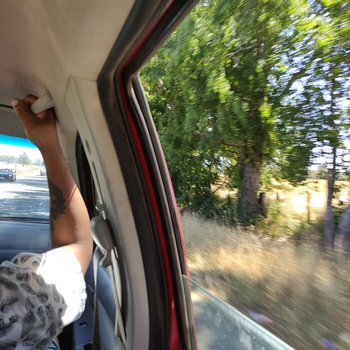 Долго иду по извилистой дороге без единого кармана для остановки, пока сама не останавливается Андрэа. Предлагает подвезти. Бесстрашная!