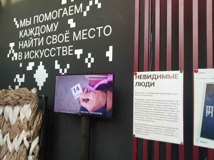 В холле центра, прежде гардероба глаза врезаются в экран с надписью HEALTH & HELP, глядящей с моего кадра из гватемальской клиники.