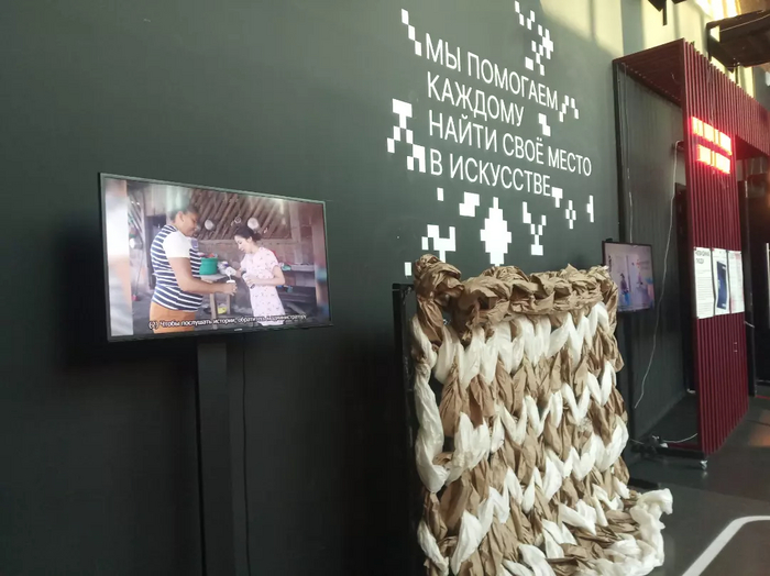 Заставляю себя оторваться, найти таки гардероб, сдать куртку и получить наушники. Два больших экрана - один про Гватемалу, другой про Никарагуа. В экранах сменяются такие знакомые снимки и звучат такие знакомые, мной записанные истории. Только голосами звучат незнакомыми, по ролям, профессионально записали.