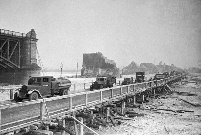 Здравствуйте Уважаемые читатели!!! Это советские машины снабжения проезжают по мосту через Вислу в январе 1945 года, в ходе начавшейся 12 января 1945 Висло-Одерской операции. Мы знаем, что Черчилль, обеспокоенный боями под Страсбургом , просил начать наступление как можно раньше, и дату с 20 января перенесли на более ранней срок. Но по факту наступать наши собирались еще в декабре 1944, и тогда с учетом событий под Будапештом, союзники могли и не получить мощный удар в Арденах, но оттепель, а затем ледоход на Висле повредил переправы, и операция откладывалась. А вот, если бы Красная армия не окружила Будапешт, тогда дела союзников были плохи, танки из Венгрии и главное топливо для них можно было отправить в Ардены. А на этом все, еще больше фактов на канале "Наша история это Гордость" в ТГ. Спасибо за внимание. До свидания!