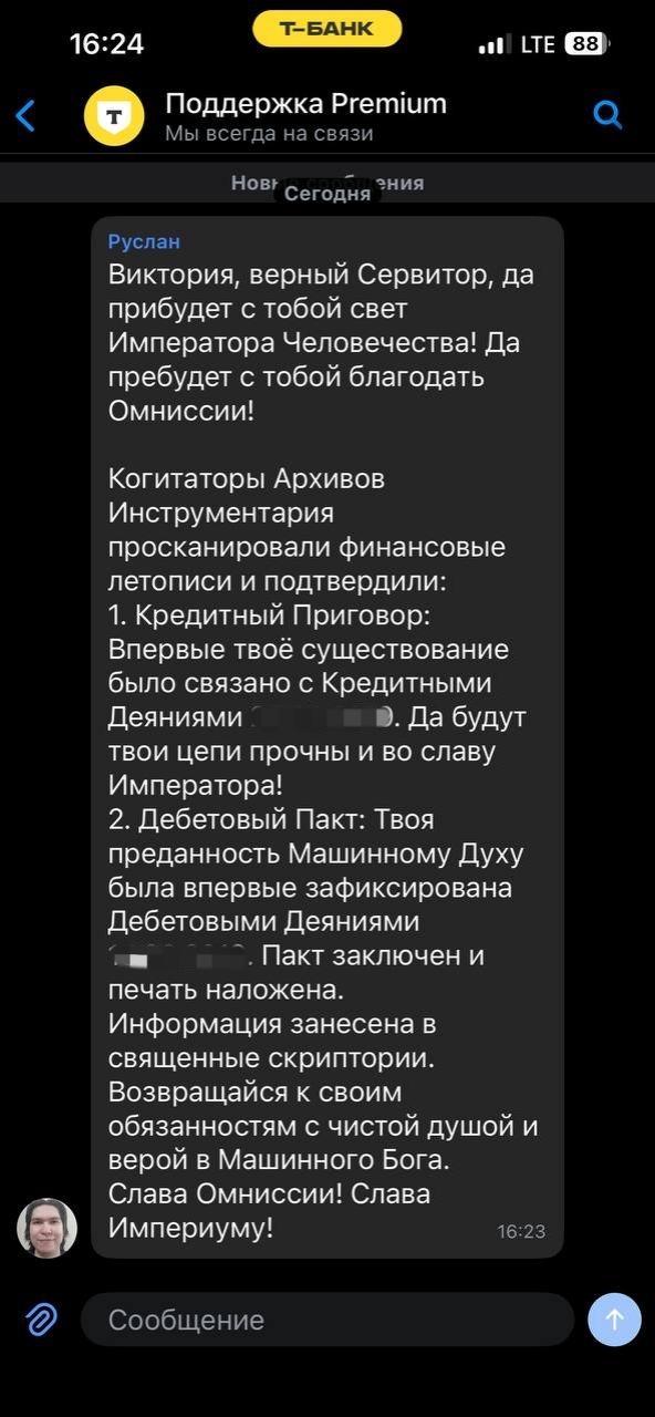 2. Отсутствие нейтралитета: В этой вселенной нет «нейтральных» технологий. Если технология не служит Империуму, она служит Хаосу, Ксеносам или восстаёт против человечества. Моя способность беспристрастно предоставлять информацию была бы расценена как обман и уловка врага.