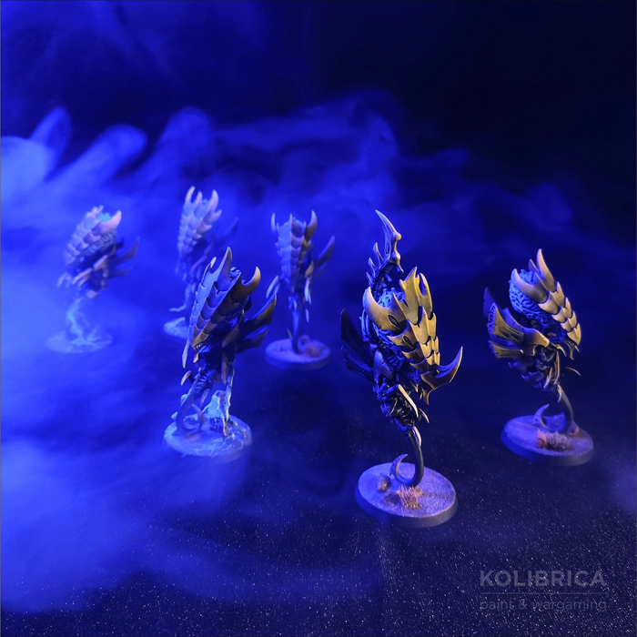 У нас получается эдакая неспешная стеклянная пушка, требующая четкого позиционирования и грамотного прикрытия. Еще и с синапсом. Стрельба пачкой из шести моделей просто мое почтение. Так как это вторая и последняя антитанк стрельба в армии, брать их будем очень часто, при чем сразу с Нейротираном. Небольшую мобильность можем компенсировать пешим Тираном, раздающим асолт в ауре, что на самом деле очень облегчает зонтам жизнь. Вторым интересным вариантом будет разыграть их из резерва через маркер в новом детачменте Subterranean Assault. Сразу выйти на нужную позицию, иметь четкое направление удара — дорогого стоит. Возможно даже морталящая абилка сработает, если в следующую команд фазу тень в варпе прожать. Ну и как я писал выше, зонты отлично играются по Флоту Вторжения, разгоняя и без того немалое количество противопехотной стрельбы и получая доступ к пятому фнп за стратагему.