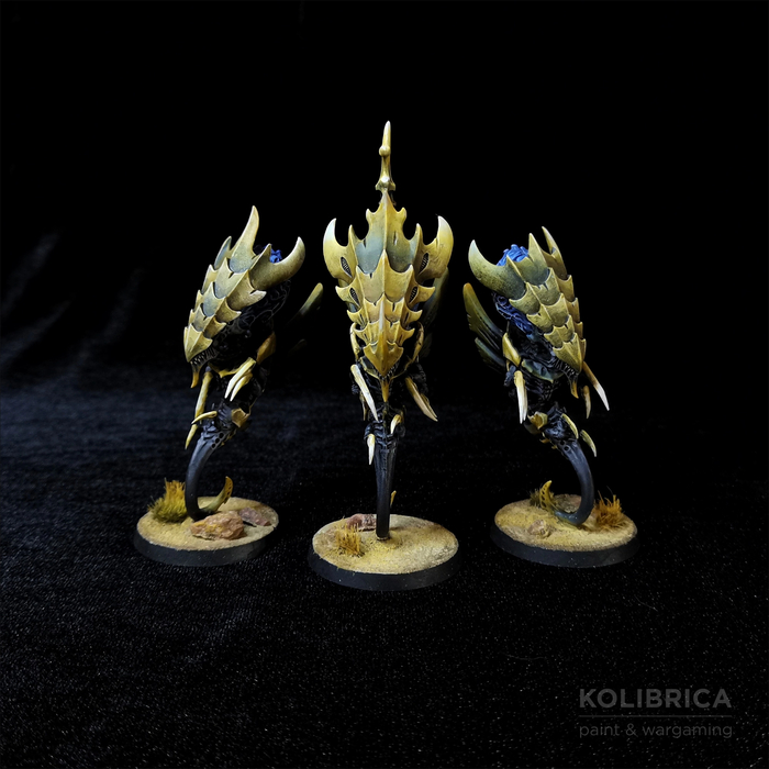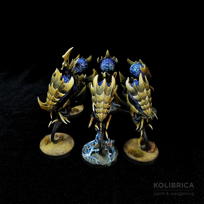 Зонты. Наряду с гантами и карнифексами являются одним из самых узнаваемых нидских юнитов. А заодно и моими любимчиками) Вот люблю я, чтобы максимально инопланетно, чужеродно и мозги во все стороны😁 На мой взгляд максимально удачный дизайн, полностью передающий их суть — перегруженные психической энергией здоровенные летающие мозговые жуки с огромными безглазыми головами и атрофированными конечностями. Помню, когда только влетал в ваху, очень впечатлился именно этим скульптом. Собираются ребятки из коробки с Веномтропами.