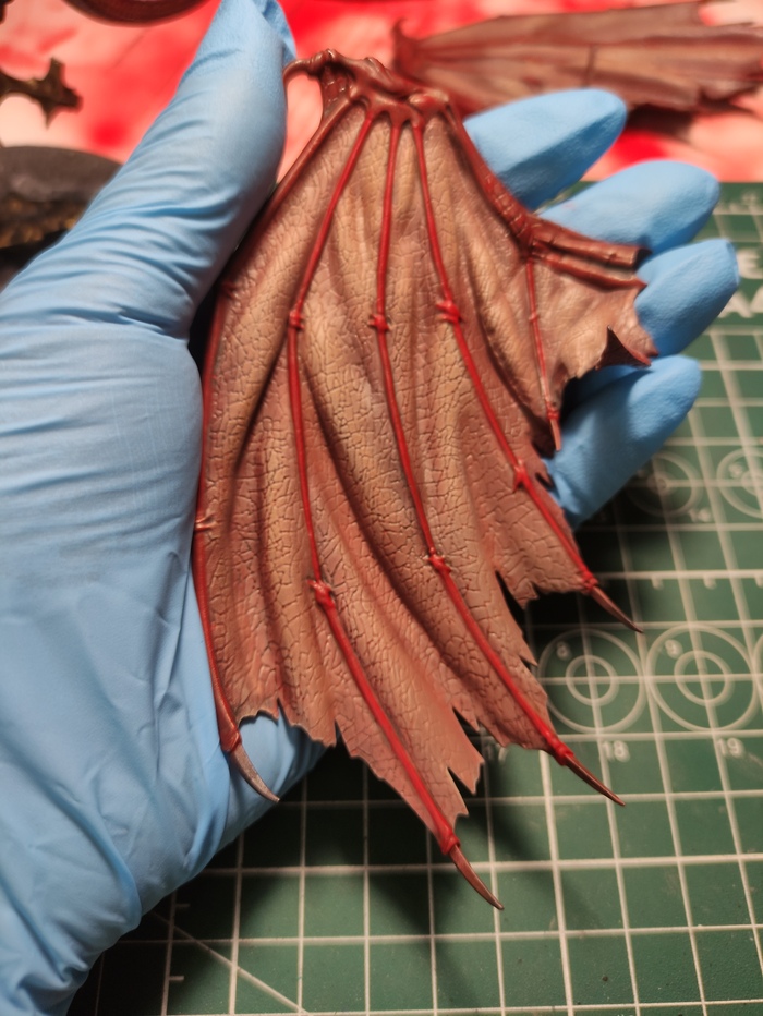 Брюшко и внутренние части перепонок перекрыла Bugmans glow и драйбрашила/хайлайтила чем-то посветлее. Тут уже без проливок.