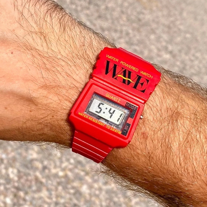 Первые попытки произвести подобное случились еще в 1980-е, когда такие часы стали частью сувенирной продукции парков Waterwold, но пик популярности пришелся на начало 90-х — с выходом часов Wave 🌊 Как и со многим странными вещами пост-кризисной кварцевой революции, он продлился недолго, но своих фанатов на волне очередного эко-хайпа привлечь к Wave сумел.