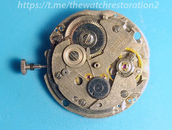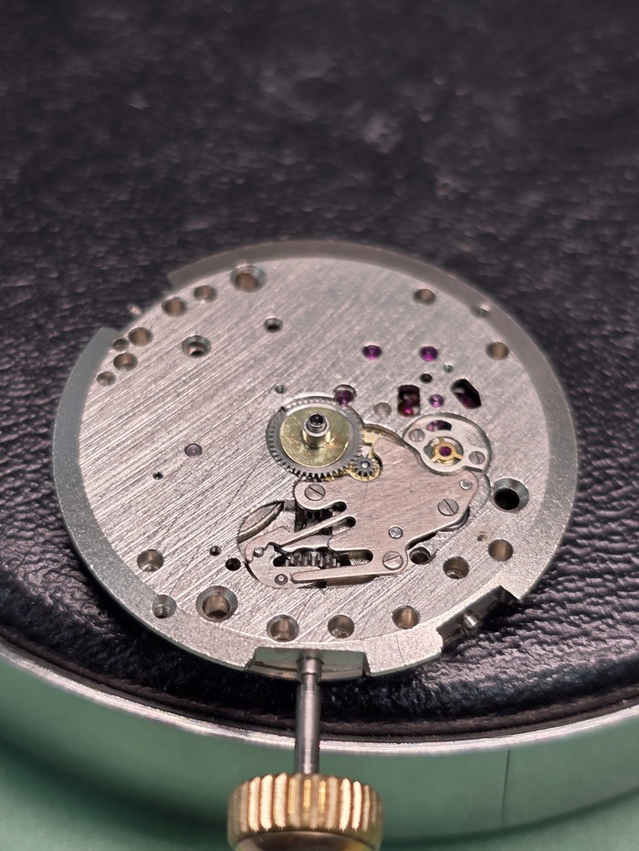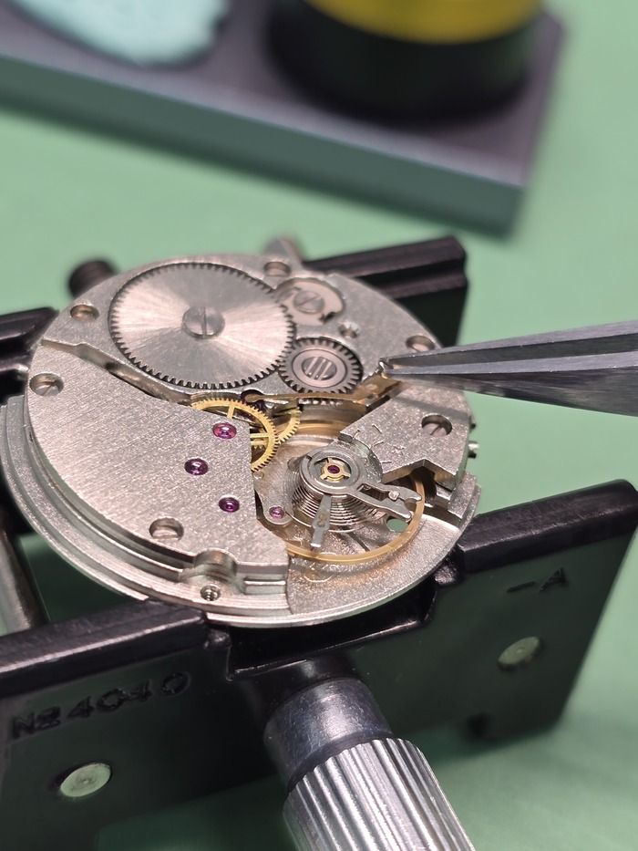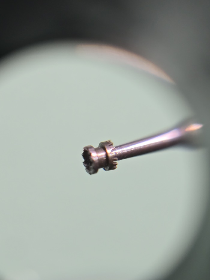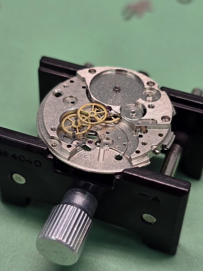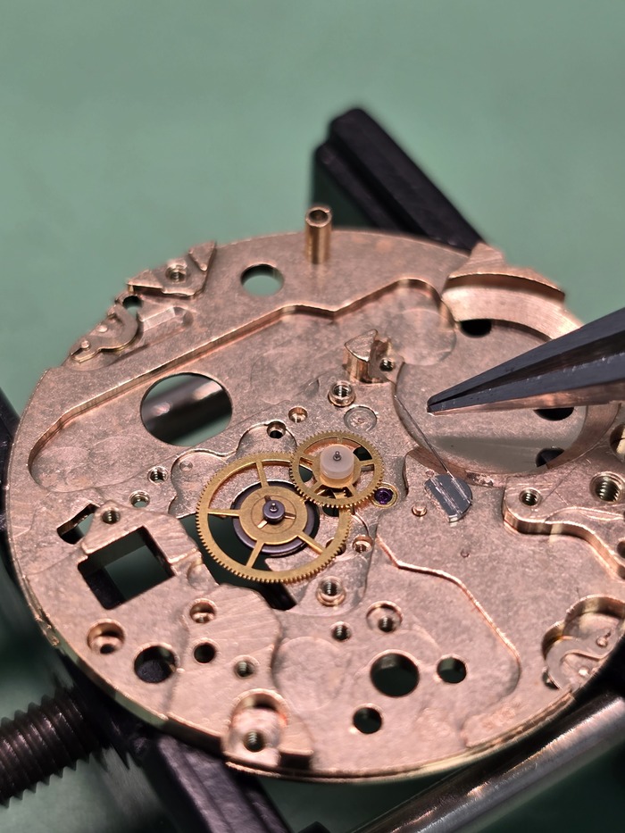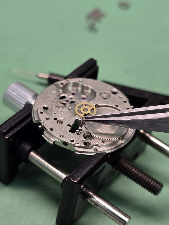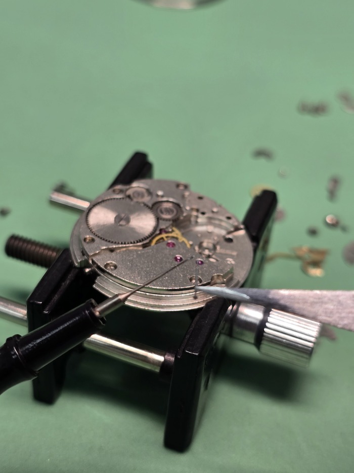 Добавляем оставшиеся детали и фазируем работу индексного механизма вот этим винтом, чтобы часы не спешили в два раза и шли стабильно.