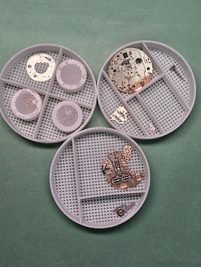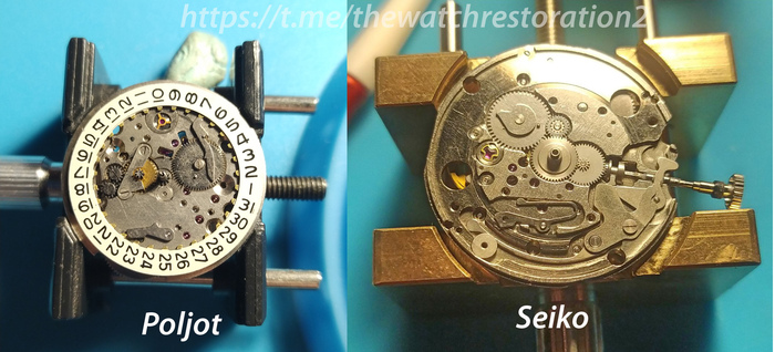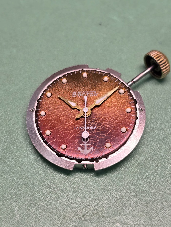 Безопасности для, сначала вынимаем половину механизма, отвечающую за ход. В противном случае, есть шансы убить механизм при съёме стрелок, просто толкнув секундную стрелку на пару делений назад.