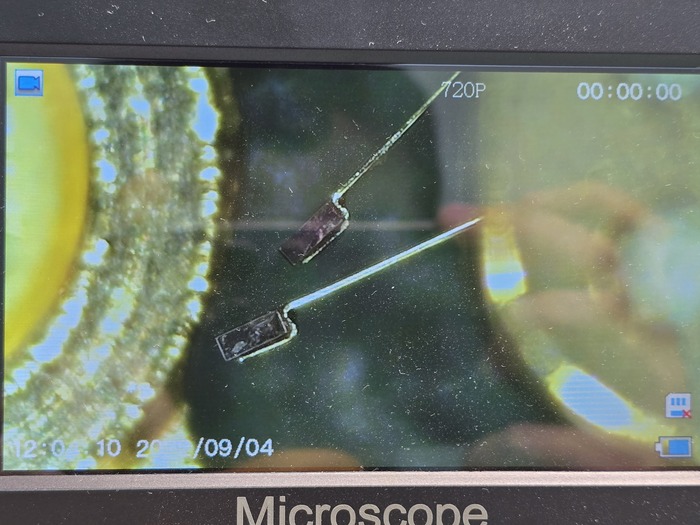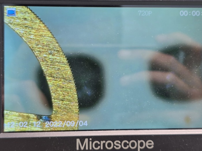 Вот так выглядят зубья индексного колеса под микроскопом. Одно колебание камертонной вилки = смещение колеса на 1 зуб. И так 300 раз в секунду.