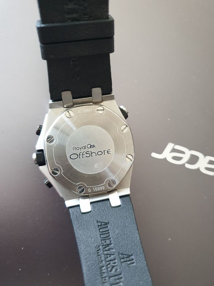 Надпись Royal на фотографии более тонкая. Надпись Offshore на изображении часов в интернете как-бы прыгает, а на фотографии она ровная. Буква h в этом слове немного отличается формой.
