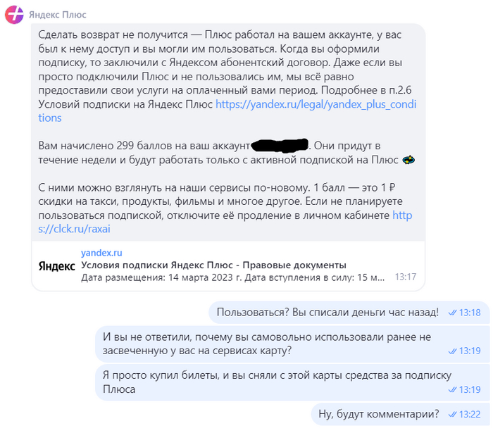 Обвинять яндекс не планирую, поливать грязью и идти на конфликт тем более. Другие сервисы меня устраивают (преимущественно яндекс музыка), но есть и явные косяки, с которыми необходимо разбираться. Я ваш давний и лояльный клиент, недавно покупал в подарок вашу подписку другому человеку (вы также можете этот факт проверить), и сейчас подобное мое появление в вашем черном списке выглядит очень некрасиво. Надеюсь на понимание и человеческий подход к ситуации, с учетом описанного контекста. Ну а если разблокировка невозможна, то так тому и быть.