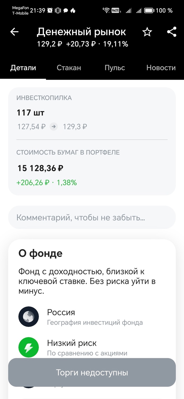 А вот 28 февраля забыла сделать скриншот, так что вот вам сегодняшний, можно просто вычесть 300 рублей (зашла через брокерское приложение, поэтому выглядит чуть иначе).