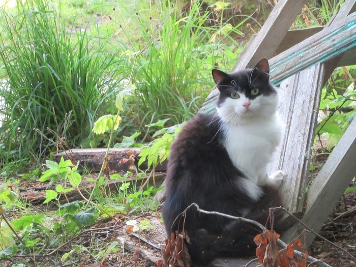 Мотя - кошка из садоводства. Бывшедомашняя. Ласковая девочка. Любит гладится. мурчит, разговаривает. По характеру - самодостаточная, старается быть лидером. но может подстроится под коллектив. Не жалует рыжих котов. Знает лоток. В питании предпочитает корм из пакетиков, но нормально ест смесь из сухого и мокрого корма. Стерилизована.