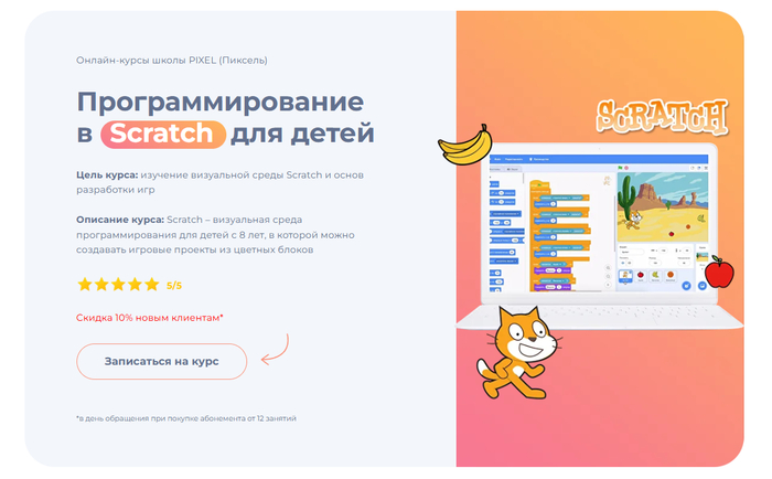 Онлайн-курс программирования в Scratch для детей, где можно разобраться в создании игр в визуально-блочной среде