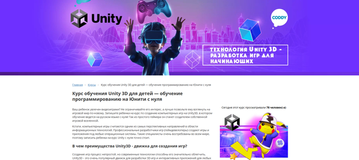 Название направления: Курс обучения Unity 3D для детей – обучение программированию на «Юнити» с нуля.