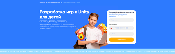 Название направления: Курсы Unity для детей.