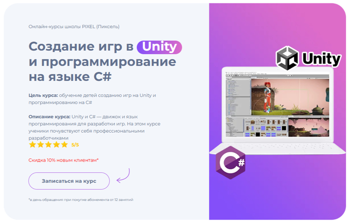 Стоимость: от 1 125 рублей за один дистанционный урок в рамках онлайн-курса Unity для детей.