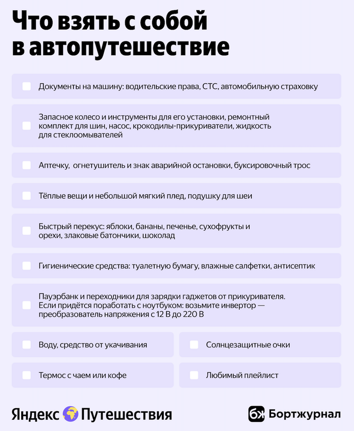 Планируйте автопутешествия с нашим сервисом. Мы составили полезные чек-листы и придумали готовые маршруты в разные города России — от Тулы до Геленджика. Рассчитали время в пути, прикинули бюджет — все, чтобы ваша поездка прошла на 10 из 10. А с промокодом AUTOTRAVEL — на все 100!