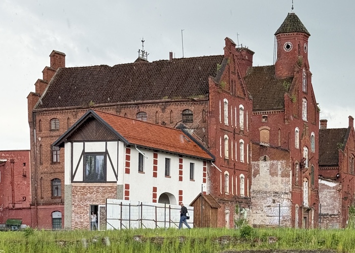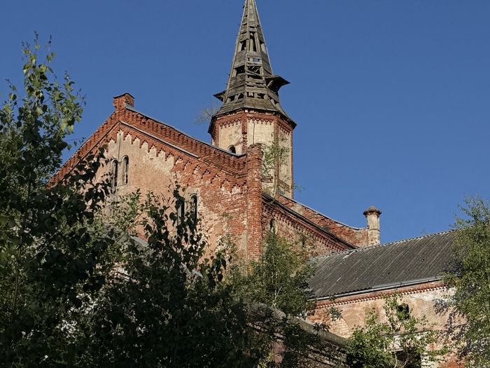 У нас по пути открылась любовь к заброшенным зданиям. Поспособствовала психиатрическая больница Алленберг в Знаменске. Это крупнейшее в свое время учреждение Восточной Пруссии, открытое в 1852 году. Построенная в мрачной псевдоготике, она пережила войны, оккупацию и использование как гарнизона СС, а теперь стоит пустой. Мы заехали туда по пути из Гвардейска, и нас на импровизированную экскурсию с походами по тайным ходам повел восьмиклассник, отдыхавший на летних каникулах у бабушки.