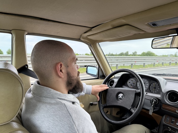 Из «фишек» сервиса — каждая машина имеет свое имя и историю. Мы изначально хотели желтый Mercedes Иммануил, но перед самой поездкой у него сломалась коробка передач. Поэтому на замену получили «Еву» — яркую, гармоничную в калининградских декорациях машину 1984 года рождения.