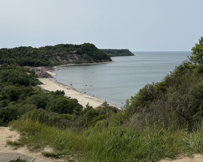 На самой косе удобно передвигаться на велосипеде. Кстати, на побережье строится новая велодорожка. Один из участков мы откатали от Зеленоградска. С одной стороны море, с другой сосны — настоящий кайф. Отличный вариант расслабленного морского променада.