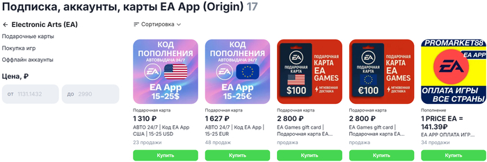 Не забывайте, что подарочные карты и аккаунты всегда привязаны к конкретному региону. Например, карта, купленная для США, будет работать только с американским аккаунтом EA. На ggsel можно найти продавцов, которые за небольшую доплату помогут сменить регион, если это потребуется.