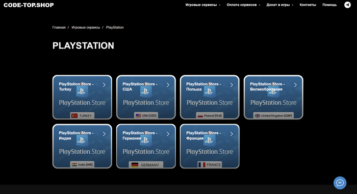 Приобретите подарочную карту PS Store соответствующего региона. Это можно сделать на проверенных цифровых платформах, таких как Code-top.shop. Там доступны различные номиналы с мгновенной доставкой.