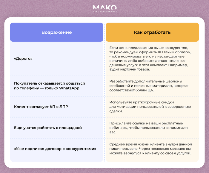 в скриптах не было блоков по отработке возражений вроде «нам дорого» или «мы пока обучаемся»;