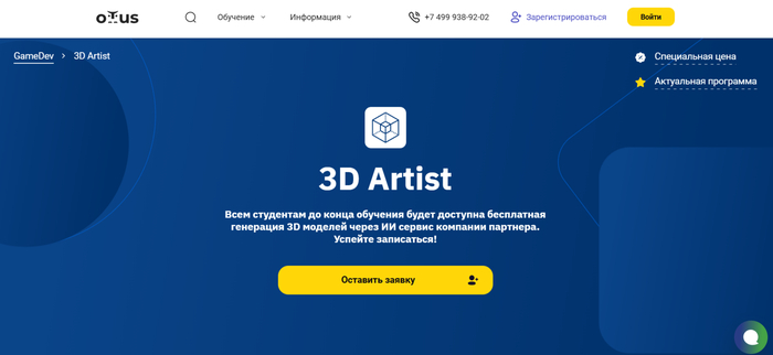 3D Artist от Otus — отличный вариант с живыми вебинарами.