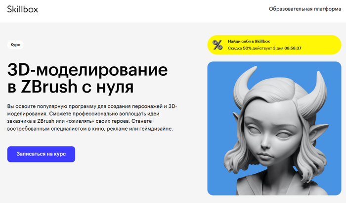 3D-моделирование в ZBrush с нуля от Skillbox — лучшее обучение ZBrush с нуля.