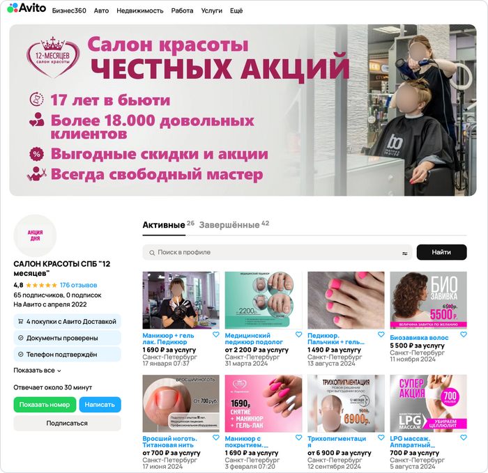 2. Рост продаж. Из карточки объявления для моделей потенциальный клиент может перейти в профиль или в другие объявления компании. Например, заинтересовался бесплатным маникюром, а потом увидел, что в этом же салоне можно сделать и стрижку по акции.
