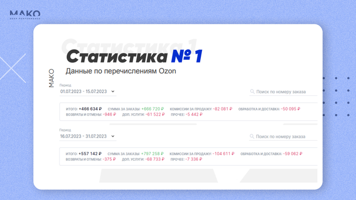 Так как клиент уже продавал на Ozon до нашего сотрудничества, мы договорились, что точкой ноль продаж будет считать его выручку в 508 500 р. Поэтому расчет эффективности продвижения и нашей комиссии происходил только с суммы прироста продаж. В первый месяц работы этот прирост составил 515 276 р., то есть общий доход клиента вырос в 2 раза.