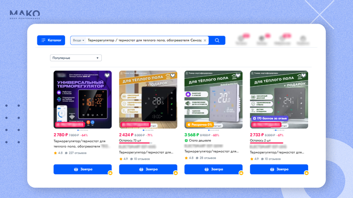 К началу нашего сотрудничества на маркетплейсе была высокая конкуренция в категории терморегуляторов. Несколько крупных продавцов и множество мелких предлагали схожие товары, с повторяющимися характеристиками. Как отстроиться от конкурентов? Мы внимательно проанализировали потребности покупателей, предложение клиента и конкурентов. А потом запустили в работу 5 инструментов продвижения, которые дали нам преимущества перед другими селлерами.