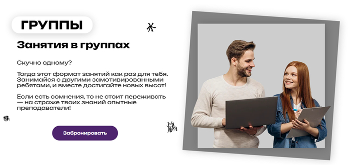 Подарок — 1 индивидуальный урок с преподавателем, возможность докупать уроки 1:1 по мере необходимости.