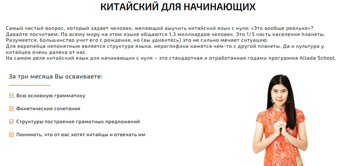 Allada School — московская сеть языковых школ с групповым и индивидуальным обучением китайскому языку по стандартной, отработанной программе.