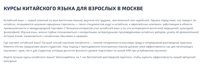 Есть программы для разных целей: «повседневный китайский», «деловой китайский», «подготовка к HSK».