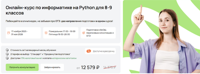 Форматы: курс «Питона» для школьников реализуется в группах и индивидуально. При желании можно отдать предпочтение самоучебе по материалам в записи.