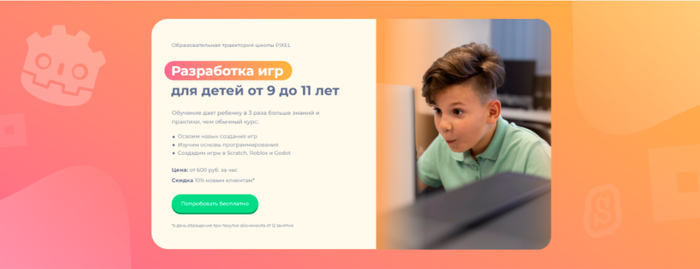 Далее представили компьютерные курсы для ребят 10 лет, которые помогут освоить одно из востребованных и популярных IT-направлений. По традиции опубликовали краткие аналитические сведения для удобства ориентации во всех обозначенных предложениях.