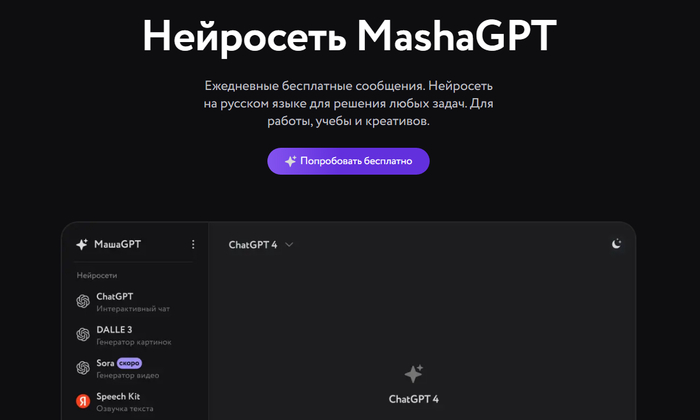 MashaGPT — русскоязычный чат-бот с возможностью создавать тексты, изображения и выполнять задания.