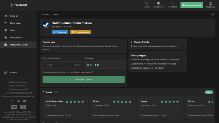 Подходит тем, кто ищет стабильный и безопасный способ пополнить Стим в России.
