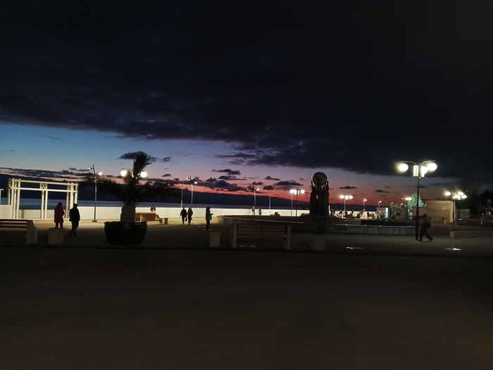 1.01.25.ср. Всем здрасте и с новым годом вас! Не зря мы уехали с Лазаревского, здесь, в Сириусе как и обещал прогноз, без дождя. Хотя темные тучки, присутствовали на небе весь день, здесь светило солнце. Во время утренней прогулки по набережной, заметили стайку дельфинов охотящихся недалеко от берега. Немного поснимали.