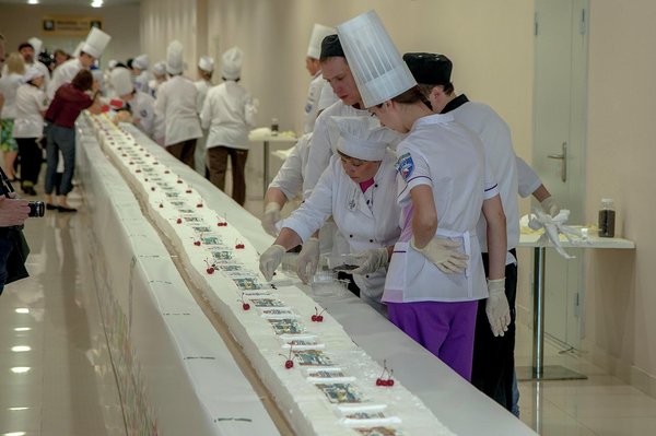 9) Еще один рекорд в Новосибирске поставили в 2013 году к Дню города. Это самое длинное пирожное-суфле. Кондитерское изделие длиной 90 метров 52 сантиметра готовили и украшали одновременно 30 лучших кондитеров, после чего пирожным угостили всех желающих.